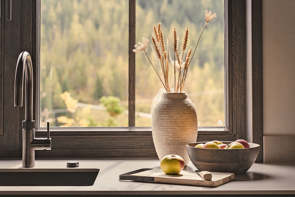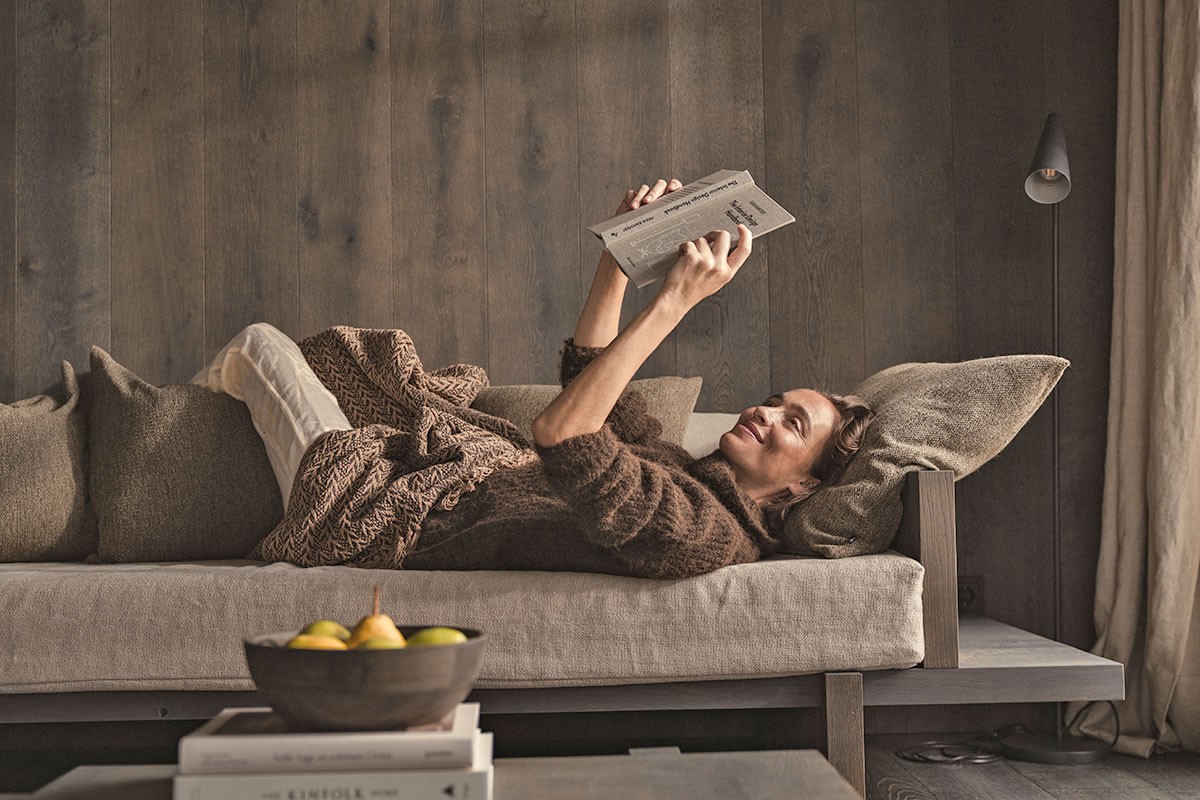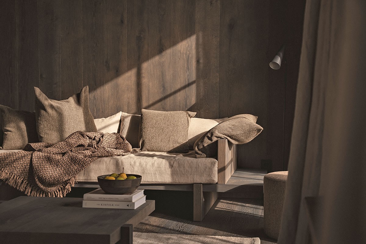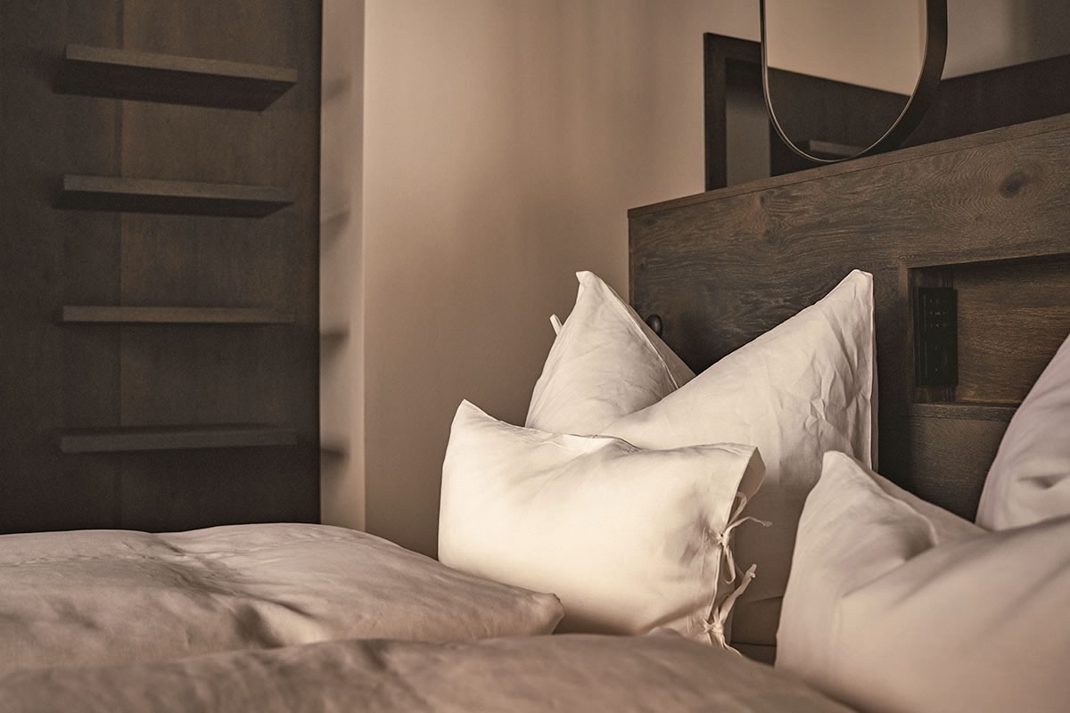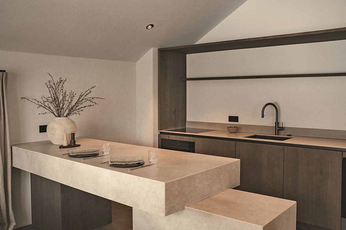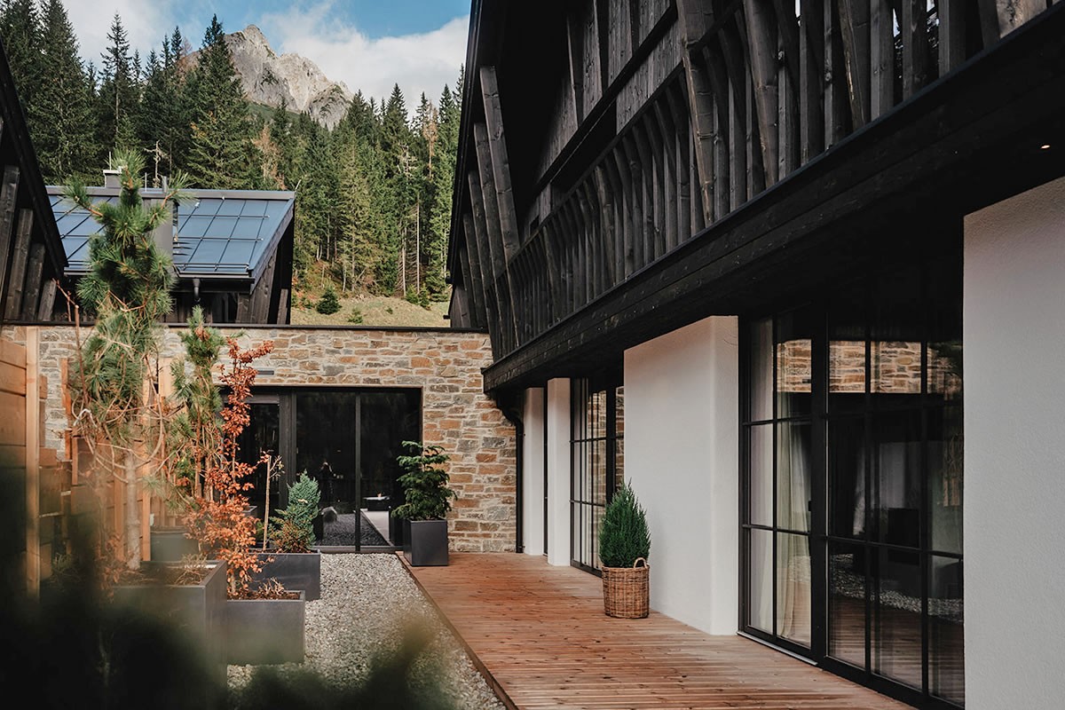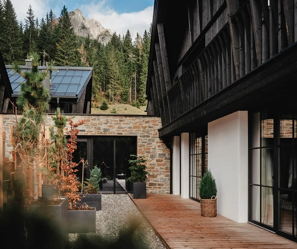 - Warmes Naturdesign, das beruhigt und den Blick durch die Panoramafenster auf die Berge leitet
